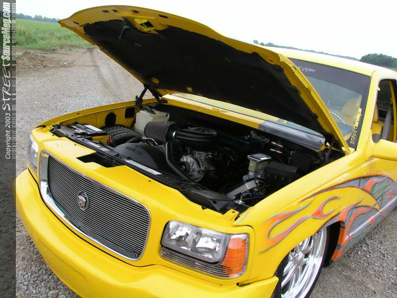Jessie has a theory you can't stunt if your going fast, so Jessie decided that the stock 5.7 TBI motor backed with the automatic supplied in the truck would suffice. Jessie did decide that underdrive pully's and a set of JBA header backed with a MagnaFlow Exhaust system would add a few extra ponies to the mix. Jessie added a K&N filter charger to the 350 to allow it plenty of breathing capabilities. Billet accessories were then added to the engine compartment to add to the extremely clean engine compartment.