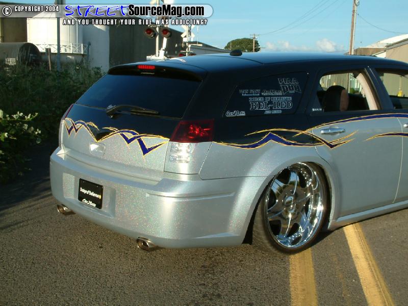 Now with a more luxury look and feel to the exterior confines, Scooter would have the Magnum dropped off to Bel-Red Auto Rebuild of Bellevue, WA. While at Bel-Red, Rich Little and the boys would spray down a House of color cobalt blue (UKO5) topcoat, pail gold (mbc01) mid coat and a base coat called shimron metallic (BC26) for the graphics.   PPG prismatic silver would then be used for the bottom two-tone scheme.