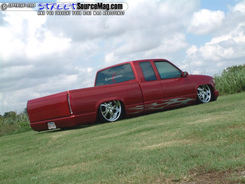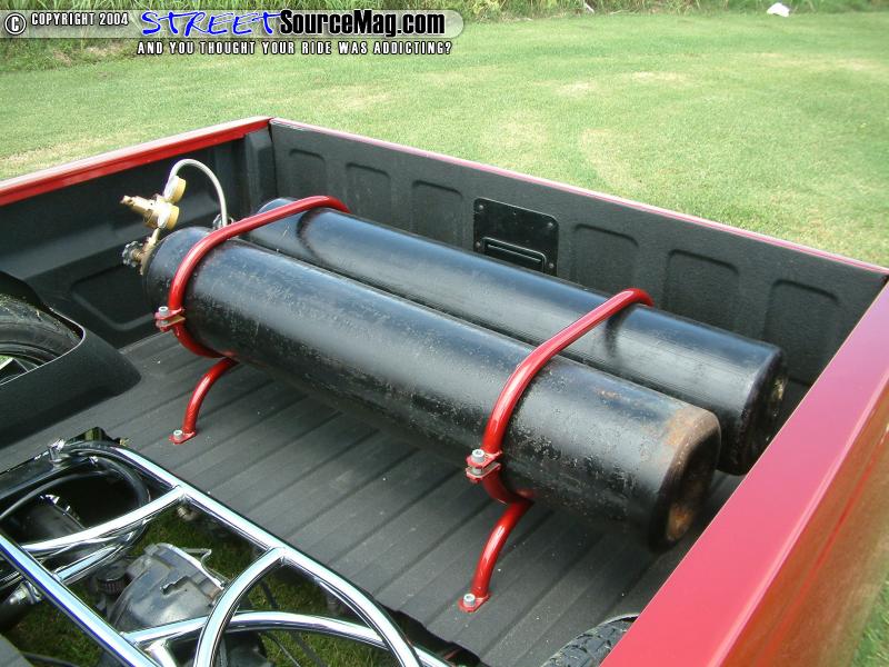 Four 3-gallon tanks, nitrogen, Parker ½ inch valves and ½ inch line would run the system. Belltech drop spindles and control arms would then be installed to help bring the front down with the rear. The battery tray would need to be modified to allow room for the Boss 304 22x9.5 inch wheels wrapped in 285/30 Dunlop rubber. It would now be time to move to the exterior of his new ride.