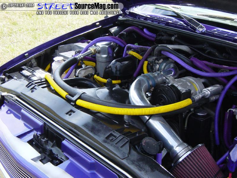 The stock 4 cylinder engine was dressed up a little and upgraded with a polished intake, 2 ½” exhaust piping and a Flowmaster muffler.