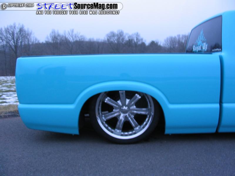 What stands out most about Mike’s truck would be the new front clip. Mike would decide that different is good and to ensure different he would mold on a Lincoln Navigator hood and grille shell along with the front half of the Navigator fenders. The bumper would then be ditched and a Navigator bumper would be narrowed and shortened to fit the smaller S10 size.