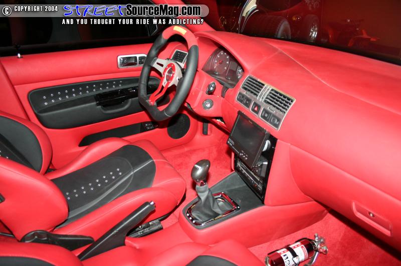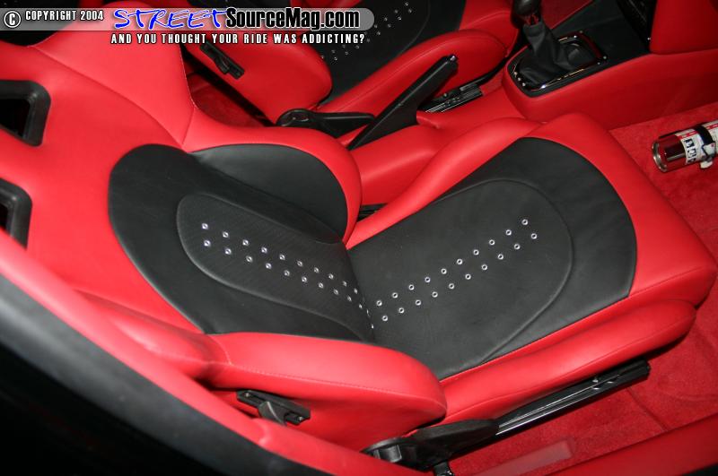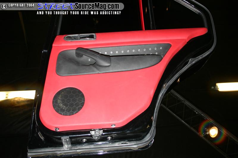 With all that done to the exterior of the car, Kindig-It Design knew they had to completely change up the interior. And they knew exactly who could do it. Justin Stephens of JS Custom Interiors started out by wrapping the whole dash in red hide. The door panels were also wrapped in red hide, and black inserts with aluminum breather holes.   The headliner was custom built and wrapped in red hide as well. A custom built rear seat surround and sub enclosure bring a more custom look to the rear, while the chopped and shortened Momo single seat finish’s it off.