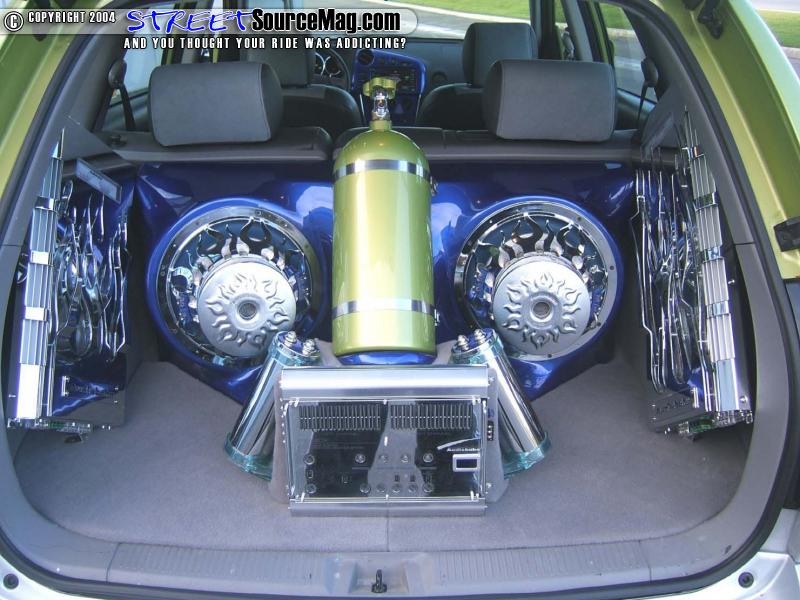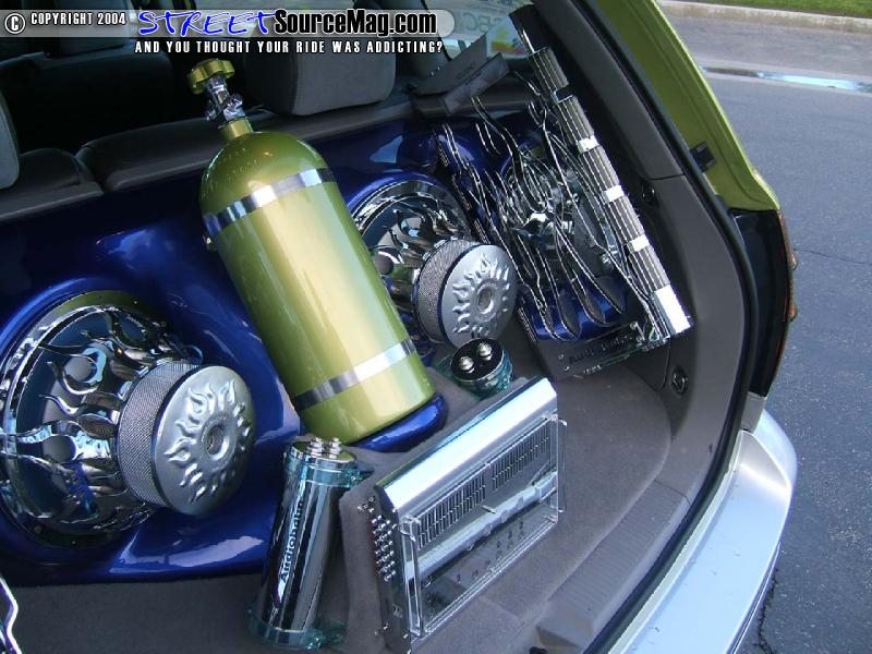 Yet, what in car system would be set with out a pair of Audiobahn screens for people sitting in the rear, and in case he happens to get bored at car shows. The rear hatchback also holds two Audiobahn screens enclosed in another one of Chris’ fiberglass masterpieces.