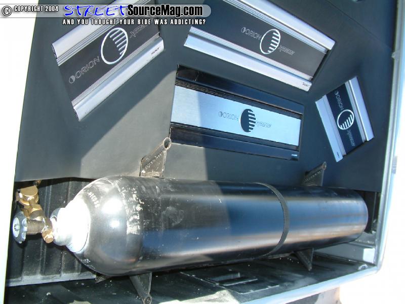 Two extreme 500-watt amps where installed to help push the highs located in the cab. The stereo work would be done by a collaboration of House of Sound, Professional Automotive Engineering, and Grunion Fabrication.