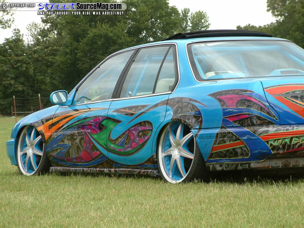 Not yet complete the taillights would be shaved and LED’s put in their place. A 35x40 sliding ragtop was then set into the roof to complete the exterior modifications.