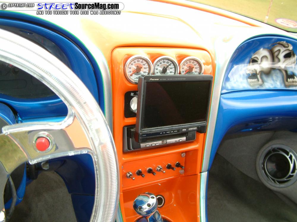 To help tie everything together the seats would be restitched in tweed. Not yet complete Joseph would install a set of Easy Street gauges, an APC acrylic steering wheel, Trenz flamed billet rearview mirror along with a host of Billet accents by UPR Products.