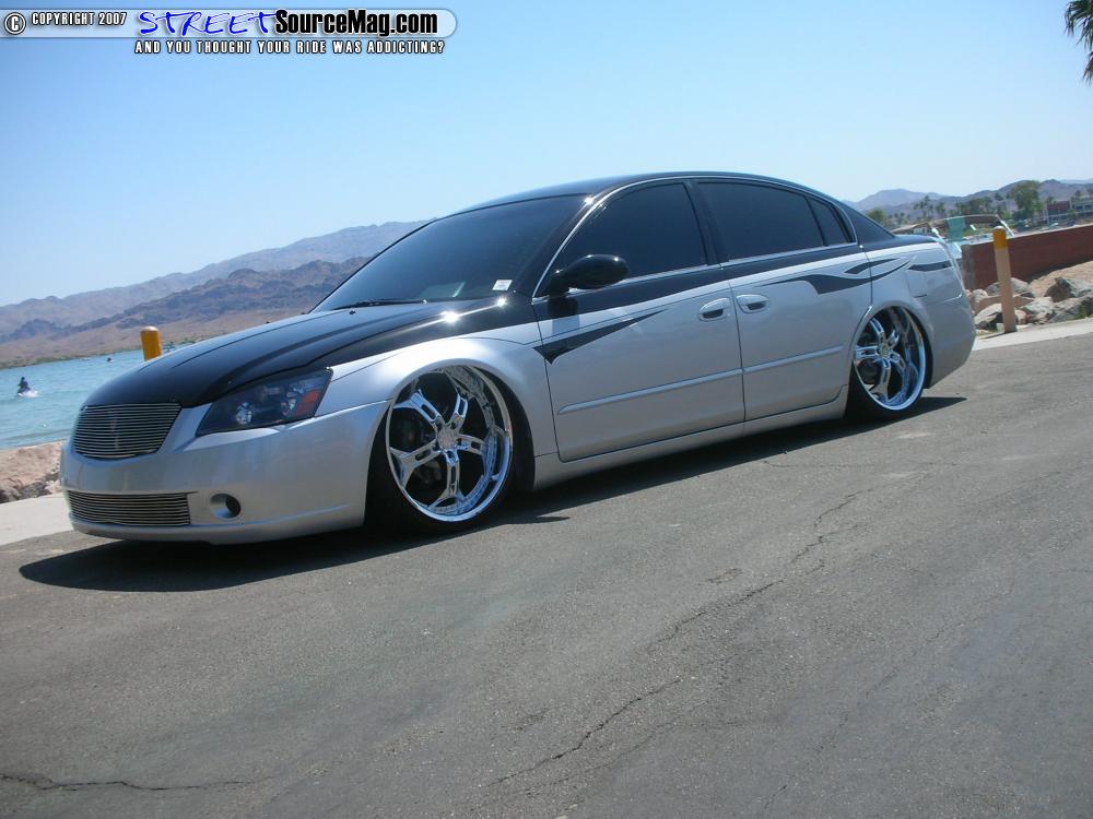 Two Viair 450 compressors would then be installed to fill two chrome 3-gallon tanks. With the suspension in place the Altima would now lay out on 22x8.5 Helo HE834 wheels wrapped in 235 Toyo Proxy 4’s. Behind the wheels and finishing off the drive train would be a set of HP Motorworks slotted, cross-drilled rotors.