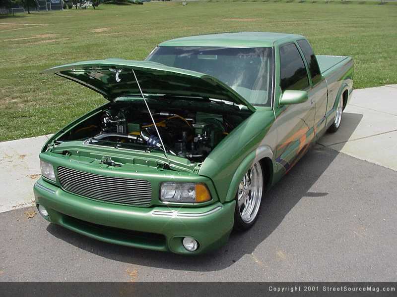 Turning his attention to the engine, Brandon gave the same level of attention here as with the rest of his Sonoma. He chromed the master cylinder and pulleys. He also chromed the valve cover and added cool flex radiator hoses for added looks. An FBI chrome air intake was installed to help the stock engine breathe better. An electric fan was also installed to keep Brandon’s truck from being dragged down. Everything else has either been painted or chromed for added show points.