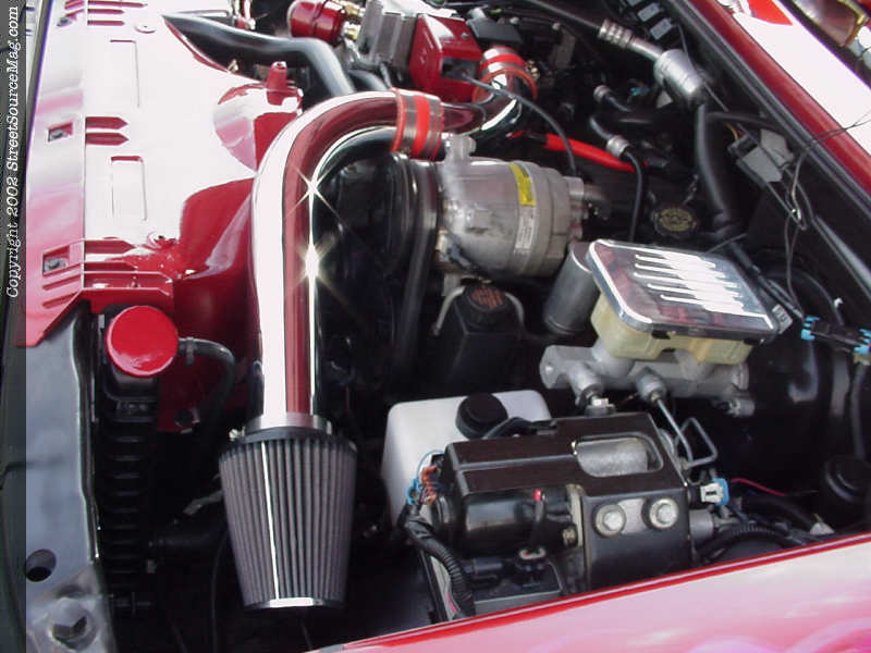 Not wanting to do much with the engine, John decided to mess a little with the air flow and pretty things up a bit. With a billet accessories and some color matched accessories, the chrome Sportruck specialties intake would show nicely. Helping with the throaty sound, a 2 ½ inch Magnaflow cat back exhaust system would be installed.
