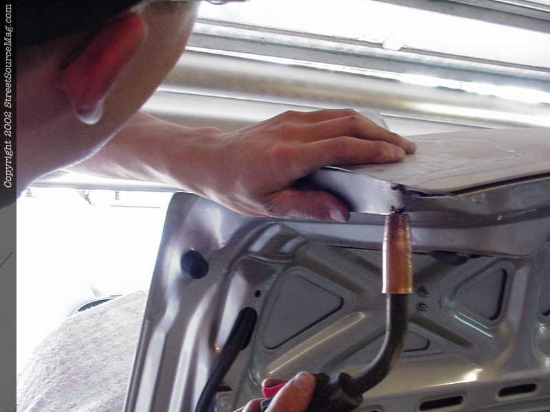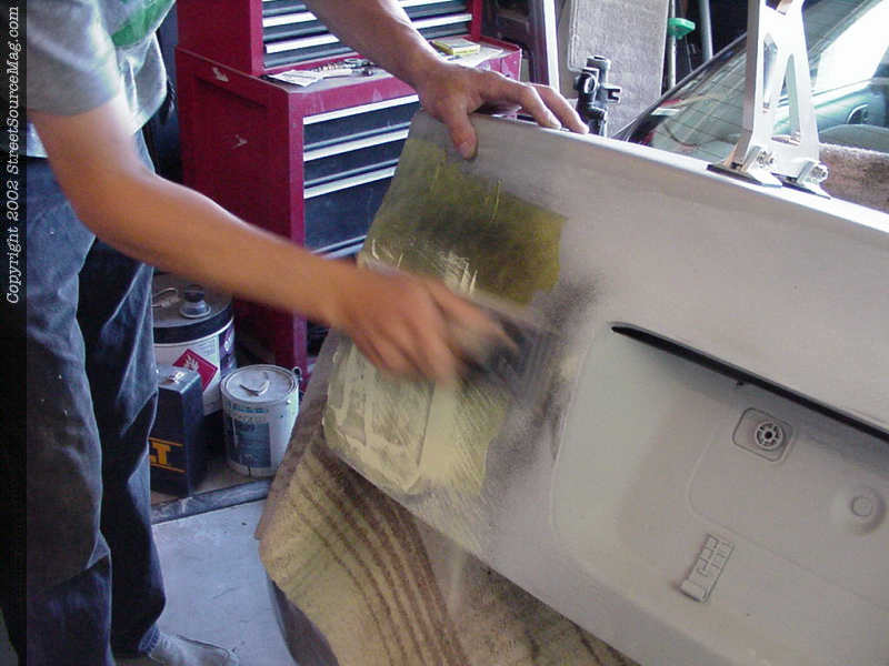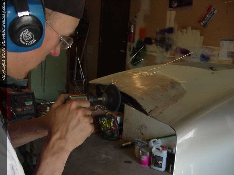 12. Once the fillers are complete and tacked in they are now grounded down in preparation for finish work. 13. To keep everything smooth and the body work clean, a thin layer of bond is needed over the filler and grinded areas. 14. Once the bondo dries it is then time to sand it down and make sure you have no high or low spots.
