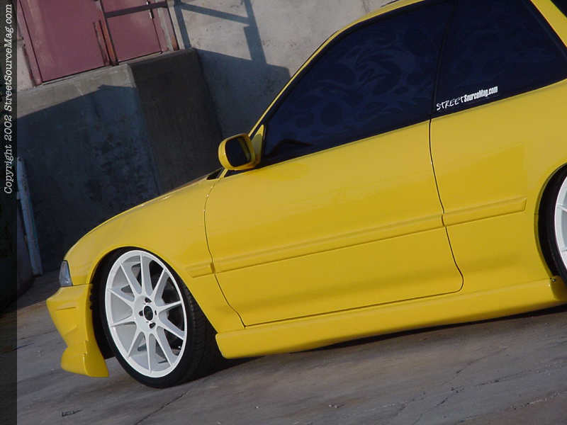 Next Regan would have the crew from Legends Auto Collision of Oklahoma City shave the door handles, emblems along with installing a set of Stanley 1 piece headlights. Helping bring a new look to the rear, Regan would install a set of Altezza style Euro clear taillights.   To bring a twist to the car, the windows would take on a complete new look. The tint would be cut and designed by Grasshopper designs in a tribal design, and laid down by Pro tint of Norman, Oklahoma.