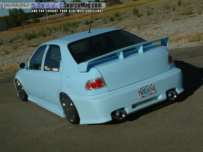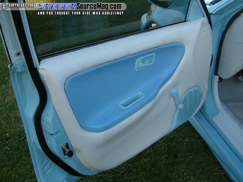 The seats would then all be wrapped in white and baby blue vinyl to help bring things together. An AIM control Panel would then be installed and the vents in the dash would all be sprayed baby blue. To finish off the interior, a 1 off custom center console would be installed housing a PS1. Jason Dunn of Salem Or, is responsible for the interior needs.