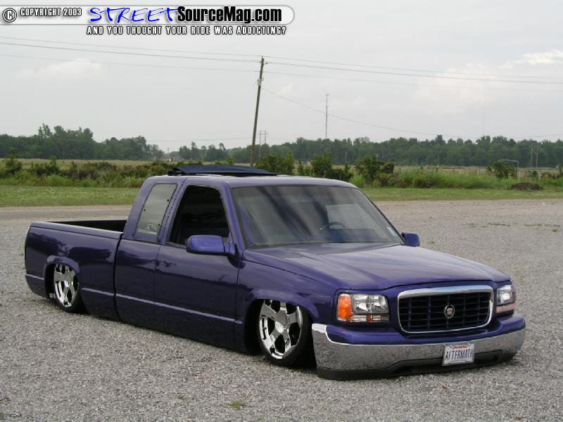 Once the body of the truck was straight and clean it was time for Brent to lay down the shiny stuff. The paint of choice was a Dupont Royal Sapphire Pearl Metallic that truly brings the Cajun Caddy to life.  Once the paint was dry Brent buffed her to a shine and added a set of late model Chevy mirrors that were painted to match and then took apart a set of Euroclear taillights and spayed the insides to match the truck. Last but not least a StreetBeat sliding Rag was installed into the roofline of the Caddy.