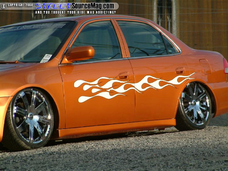 The taillights would then be swapped out with ’00 taillights and the inner trunk lights would be shaved. To bring out a smoother appearance down the lines, the side moldings would be shaved while another club member, Chad Mauer, would mold a custom license plate box into the trunk.