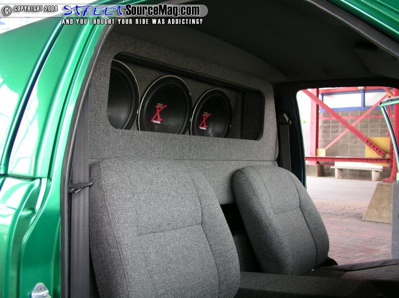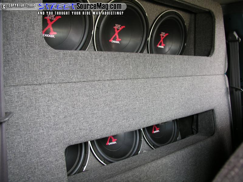 Now as I said before Jimmy is a bass head and loves car audio, so Kicker resolution separates were installed in custom built kick panels for highs. In the shell (6) Kicker SPL 12’s were added to a custom built enclosure that was also wrapped in gray tweed.