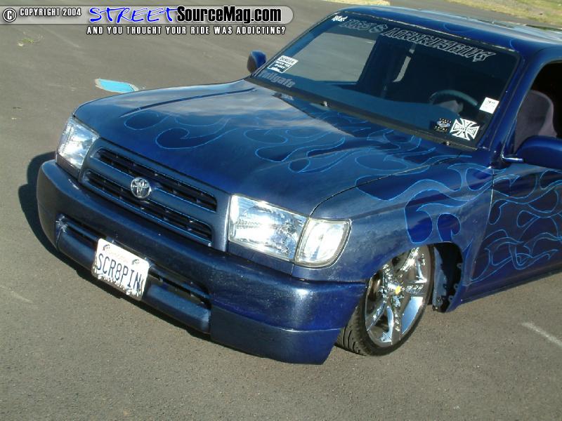 With the height corrected it was now time to work the exterior. Starting upfront the stock clip would be thrown away and replaced by a 2000 4-runner hood, grille, headlights, front fenders while the bumper is from a ’98 4 runner.   Moving back the doors would be shaved of the handles and the gas filler door would be relocated into the bed.
