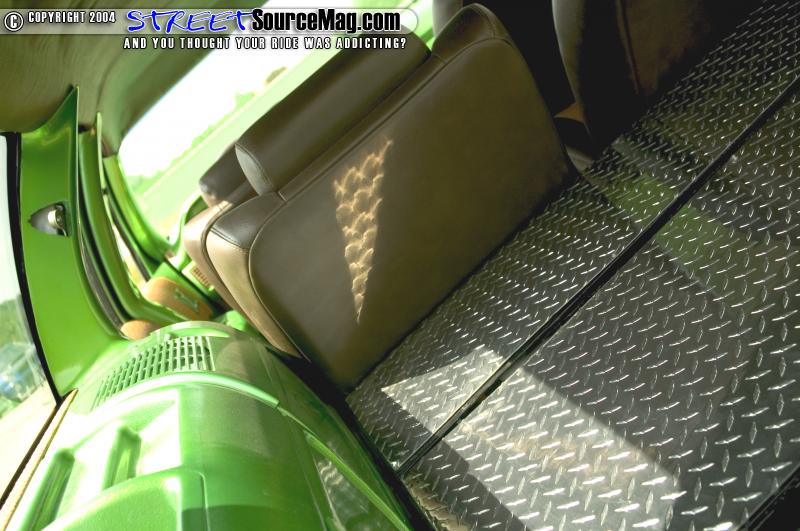 For the seats they switched out to four Impalla SS buckets all of which were covered in Ostrich and brown vinyl. The door panels were also given the same treatment along with some billet knobs to go along with the Trenz billet steering wheel and rear view mirror.