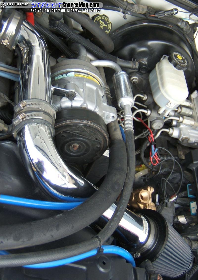 But, before he threw the seats back in the truck, he added a little flame stitching to tie in the exterior to the interior. Matt also had some of the interior pieces such as parts of the door panels, and dash painted by K-Daddyz to match the white of the exterior. Then Matt added on a Colorado Customs “Fire” Billet Steering wheel for an extra bit of flair and billet shifter and window cranks to add a little more old school to the project. The last portion of Matt’s truck that needed to be touched was under the hood. Matt started by adding a Chrome Intake along with a nice set of Chrome headers. Jacobs Electronics plug wires and Flowmaster Cat-back exhaust also helps little Matt’s 4 cylinder get up to speed a littler quicker.