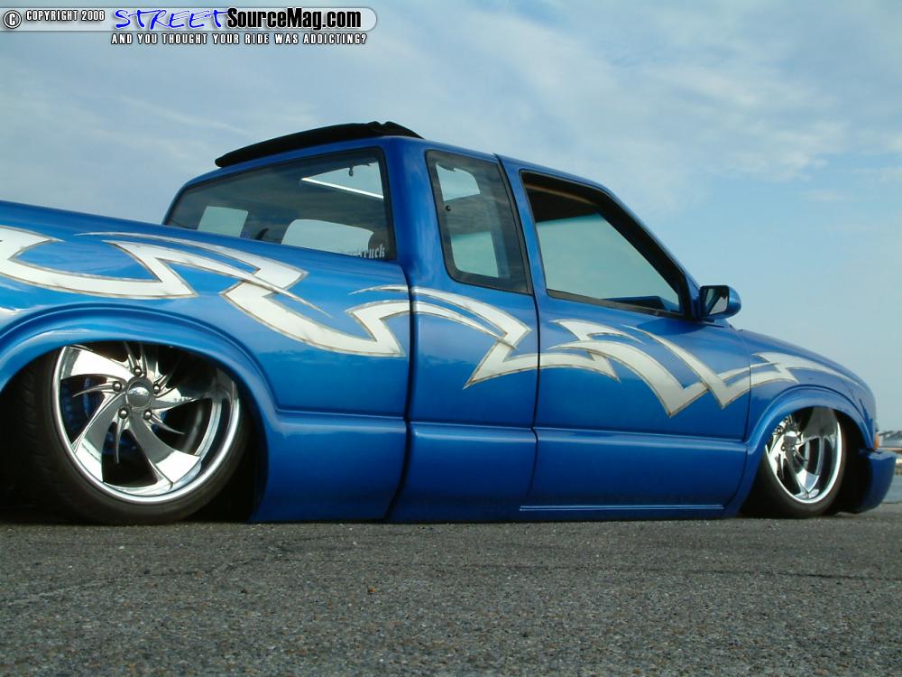 A set of ’98 S10 headlights would be mounted upfront while the taillights, tailgate, and emblems would all be shaved. Adding the finished touches Jason would set the doors suicide style and install a ragtop into the roof along with sheet metal and molding the entire inside bed walls and floor.