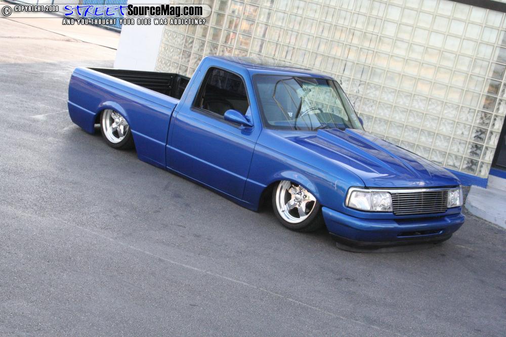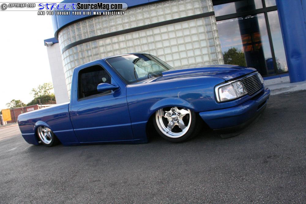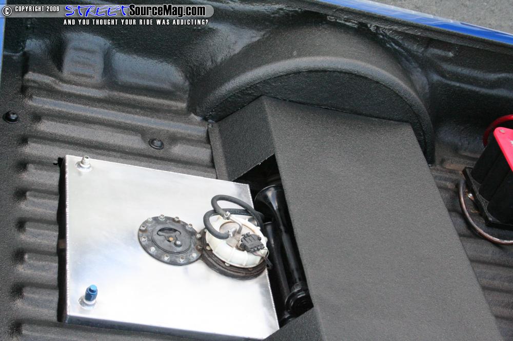 Without the aired out suspension this truck would not be able to cuddle with the 17x7 Centerline Daggers wrapped in 215 40 17 Kumho Fires. In the front the bags made their resting place on the radius arms. In the back they rest on a cantilever 6 link all being fed by ½ inch lines and valves.
