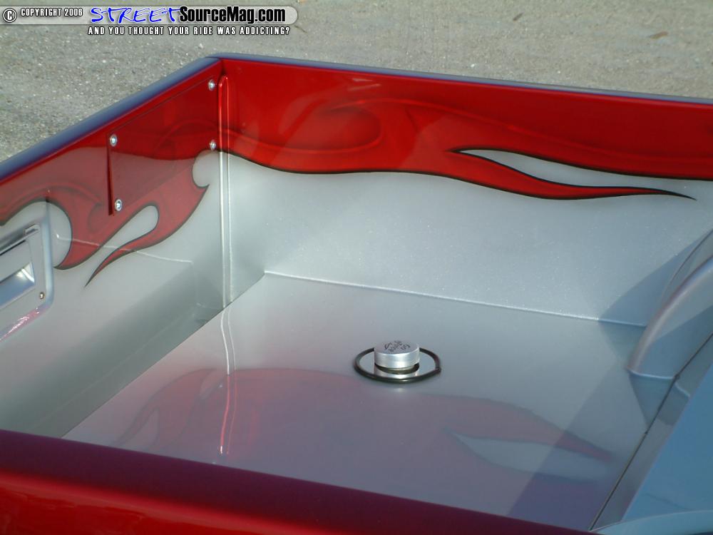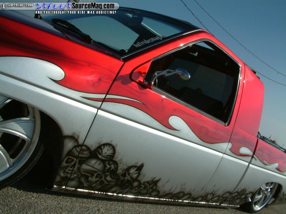 After having the body worked over and prepped David would then lay down a Candy Apple Red base with an Orion silver HOK with airbrushed skulls to finish things off.