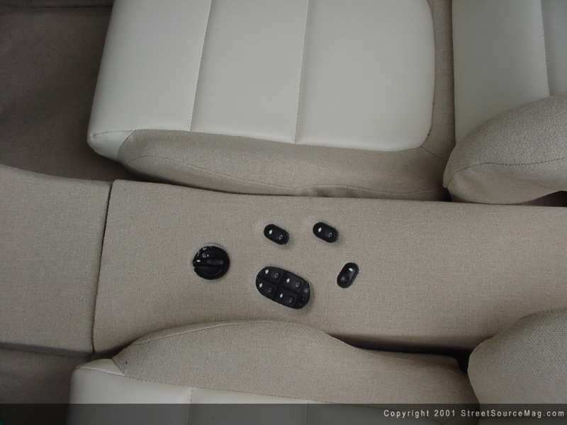 The interior was one of the last items at hand. A custom dash that molds into a center console and houses the power window controls, air gauges and air paddles was created. Along with the custom dash, new door panels were made to match. A Ford Contour SVT gauges cluster was added into the custom dash for a new look. A custom tan tweed headliner was then made and installed. The interior work was performed by Matt along with Eric from KustomWerks. To take care of the seating arrangements, Integra bucket seats where used front and rear and wrapped in sand tweed & vinyl, which was done by Action Auto.