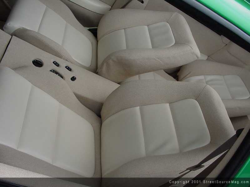 | To take care of the seating arrangements, Integra bucket seats where used front and rear and wrapped in sand tweed & vinyl. | Finally to complete this show stopper, the frame and engine compartment needed a little love. Matt started by pulling the 4.3 out and cleaning and smoothing the frame, then it was sprayed silver.