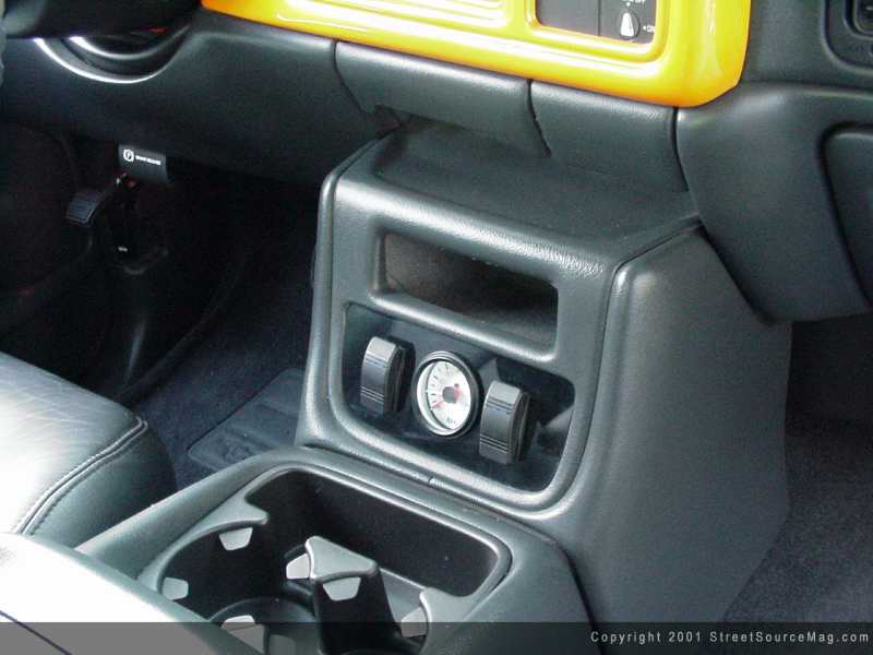 Last, but certainly not least, Pat’s 5.3 Vortec was treated to some customization of its own. Texas Motorsports created an aluminum air induction for Pat’s engine, and Pat himself added the flamed graphics. Dual Flowmasters and a Hypertech reprogrammer help squeeze a few more ponies out of Pat’s engine.