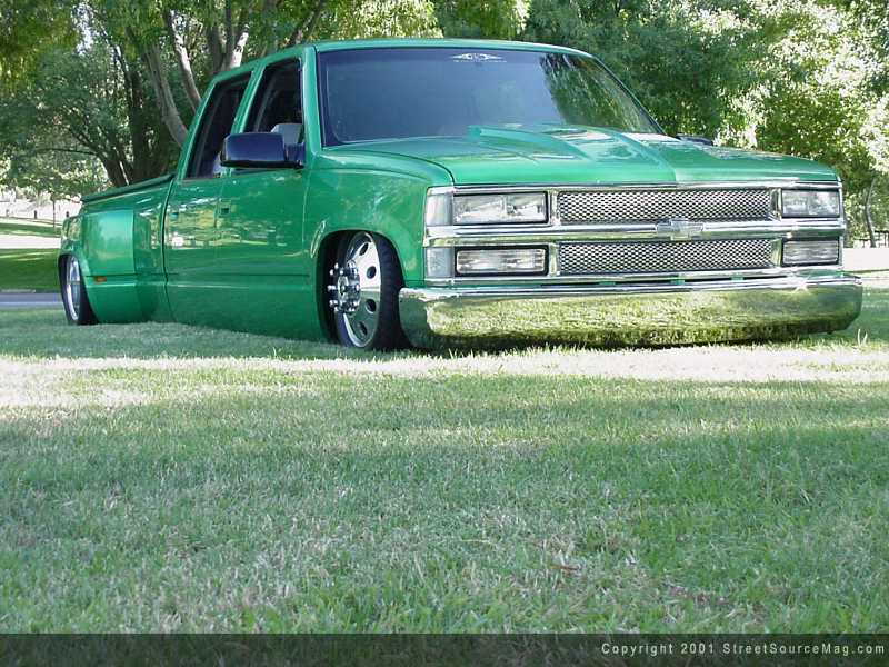 When Chad purchased his 1993 Dually back in 1996 his mind pondered on what could actually become of it. So, he called on Bobby McCurdy and Chris Daley of Totally Polished to start putting this 93’ Chevy on the ground. Bobby immediately began with the air bag setup starting with a two link and step notch in the rear that was custom built by Totally Polished. With the rear air bags taken care of they called on Pro Hopper for a front hydraulic setup. With the truck now laying frame Chad still didn’t think it was low enough, so after talking to Bobby McCurdy they decided to go with a three-and-a-half inch body drop.  | It just wouldn’t be right for the guys of Totally Polished NOT to lay the body on the ground. |