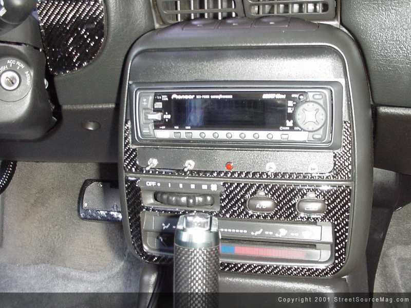To highlight the newfound interior, carbon fiber inserts where laid out over the dash. With the seating arrangements taken care of, next on the agenda was the stereo system. To apply the sounds, a Pioneer CD player was used to bring the volume to KEF Q series mids and tweets all done by Audio Works.