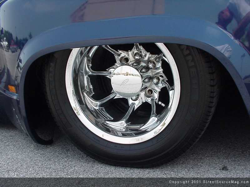 Nelson’s 454 V-8 engine remains, for the most part, stock, but very clean. A few items have been painted and chromed. To breathe a little better, a K&N air filter was added and Dynomax muffler with bigger exhaust tubing was also added.  Low, smooth and shining isn’t anything if you don’t have a set of wheels to compliment it. Nelson knew this and acted accordingly. Concept Neeper N-8 wheels were chosen. 16x7” in the front with Winston 205-55-16 tires and 16x7 ½” with Winston 205-55-16 tires were bolted in place.