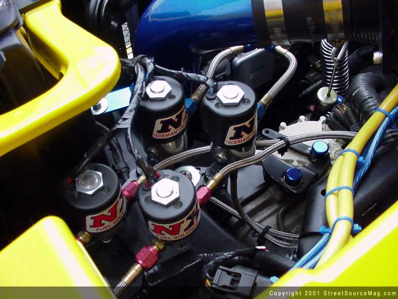 Next the engine would be in need of some help breathing. To work these needs you can find an AEM cold air intake bolted up along with a 3-inch Bosal Comelin exhaust. With the engine breathing properly, some fuel would be needed pushed through the system when needed. Robert then decided to install a Nitrous Express Dual stage system for a quick 100 shot for needed passing.