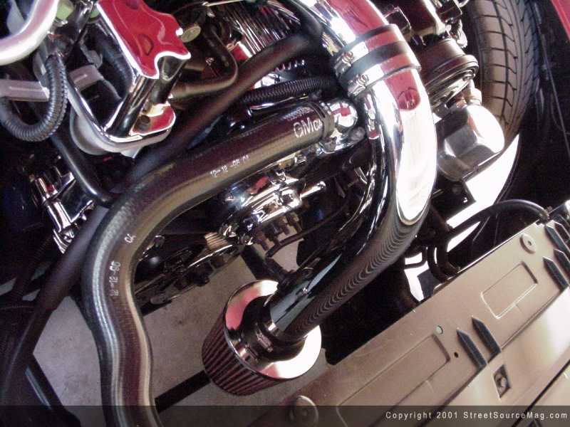 To complete the over all show aspect of Kent's ride, the engine bay couldn't be left alone. Already sporting the beast of a V6, many things would need to be done to make him happy. For starters, a Sport Truck Specialties chrome air intake would be installed for added performance.