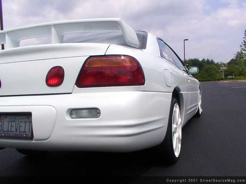 Before the front end was reassembled, the turn signals were shaved and the hood squirters were welded up. Moving to the rear of the Sebring, the first thing that catches your eye is a set of center taillights grafted off of a Lexus GS 400. Making room for the new lights; the emblems, trunk lock and factory third brake light had to be removed. Scott also had the antenna shaved while the rear of the car was apart. Once all of the rear welding was done, it was time to bolt on a Wings West Touring wing. Now that all the bodywork was completed it was time to spray the base coat. Scott decided to have the mirrors and wiper cowl sprayed while the paint gun was in use. For all the paint and bodywork, the Sebring was taken to Extreme Auto body in Asheville, NC.