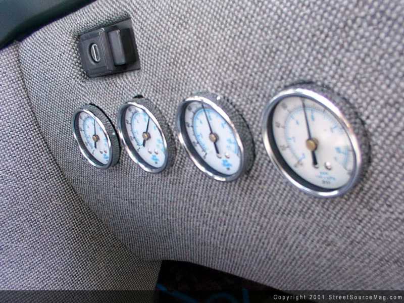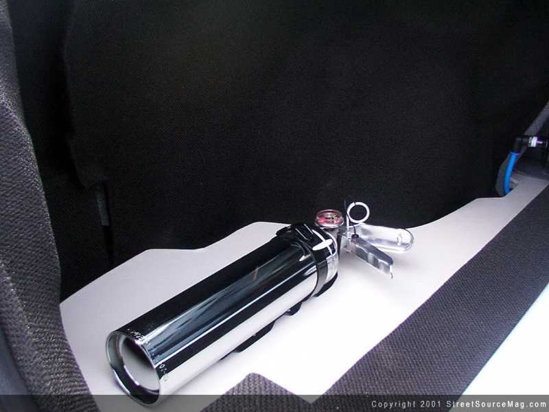 For driving enjoyment Scott has added a Clarion 6.4" TV to the passenger side rear view mirror, sunk a Sony Playstation 2 into the front passenger foot area and mounted a VCR in the truck. All of this is controlled by a Panasonic head unit.