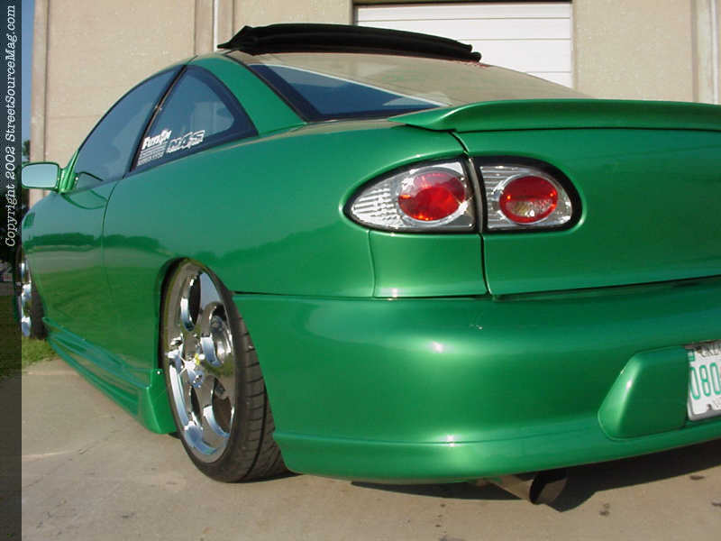 The door handles would be shaved along with the antenna, which was relocated into another location. The 3rd brake light would be shaved along with a custom door and relocated gas filler.   For the hot summer days Angie decided to have a sliding ragtop installed allowing the sunlight to shine through. A set of APC projector beam headlights along with Altezza style clear taillights where installed to finish things off. Ronald Remsey of Collinsville, OK is responsible for the bodywork.