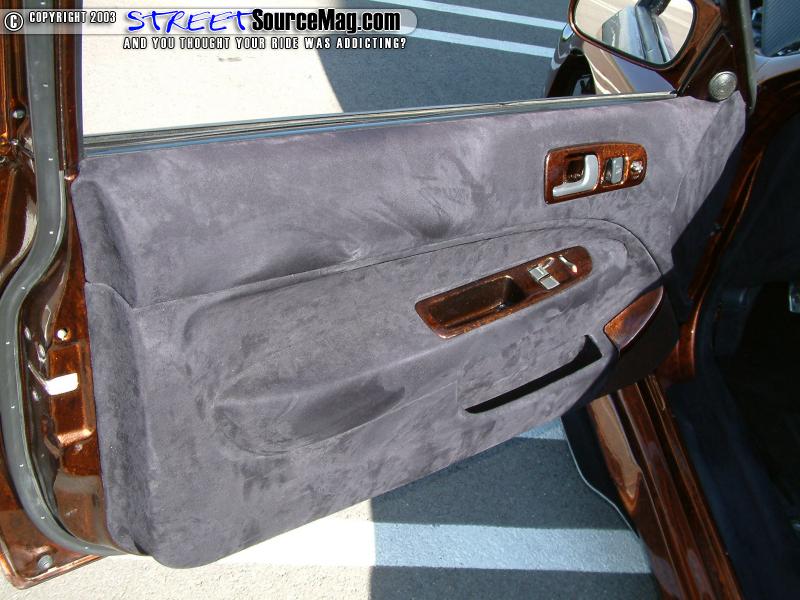 Leaving himself with nothing more then high expectations, Kenny's interior needs would be accomplished by Kreative Auto Interior of Rosemead, CA. While in their hands, the crew would first wrap the dash in black suede with painted trim to help match the exterior.