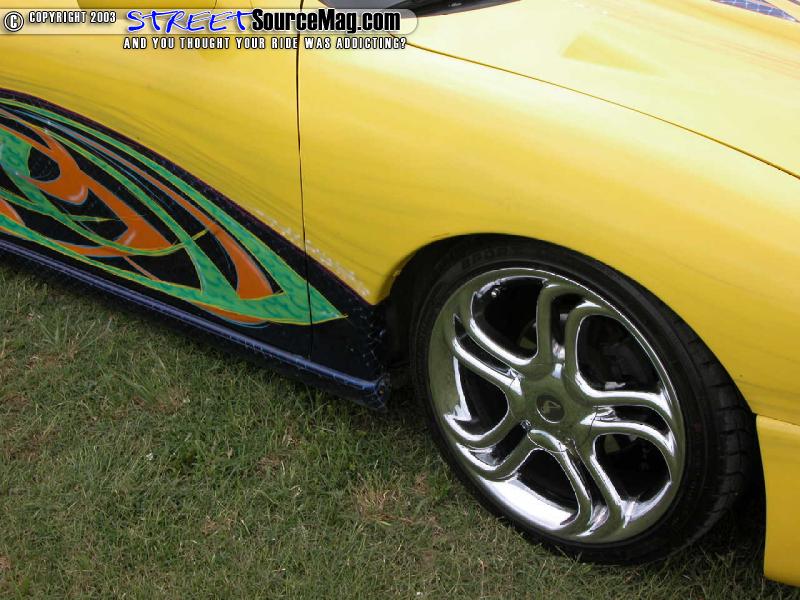 With the looks out of the way, it was time to modify the suspension and give the car another whole new appearance. Swapping the stock wheels for a set of 17" Reflection Alda wheels wrapped in 205-40-17 Kumho tires was only the beginning.   Chris is like most of us; he wanted to bring the car down to the ground. Utilizing strut bags in the front that were reworked to allow the car to lay and air cylinders in the rear demonstrated a few of the techniques Chris has learned over the years.