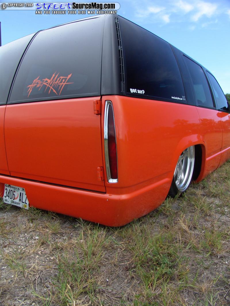 With the body reworked it was time for paint. Alec would then drop the Tahoe off to Scott Whidby of Moultrie, GA for his paint expertise. The paint of choice would be a 2-toned House of Kolor Tangelo pearl and black scheme.