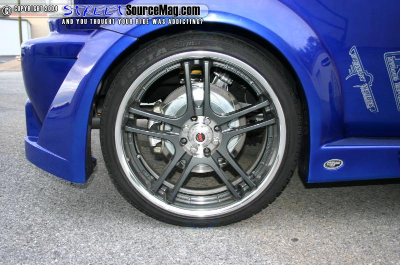 Other modifications to the motor include the Moroso oil pan, polished lightweight pulleys, Equal Length manifold, OBX exhaust, and a 50 shot of nitrous courtesy of NX. The turbo setup is taken care of with a Greddy Turbo Timer.
