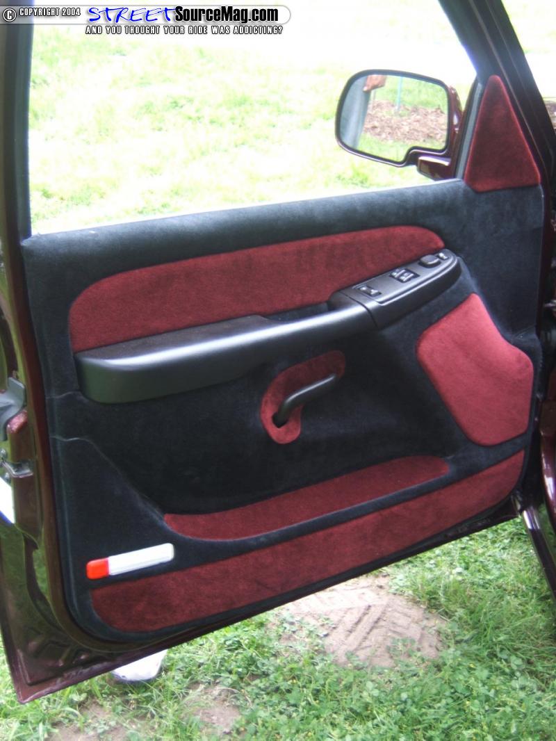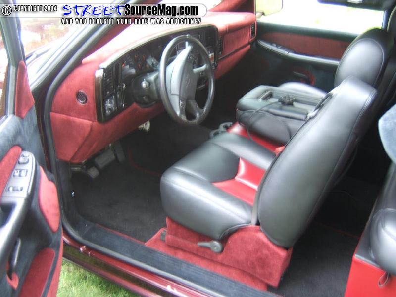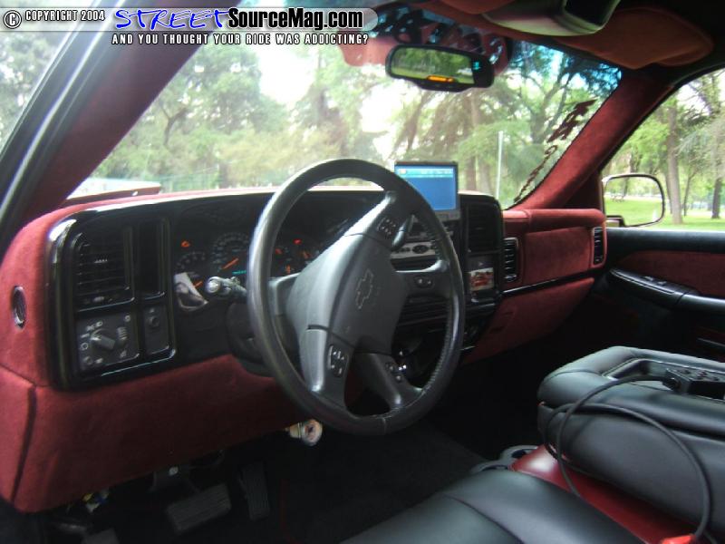 While most people do simple things to the interior, Jose wanted to make sure his truck was different. He covered everything but the seats in black and burgundy velour to match the exterior the of the truck. The seats he chose to do in matching black and burgundy vinyl. For in car entertainment Jose kept the truck practical by adding a Pioneer in dash screen along with two visor screens.