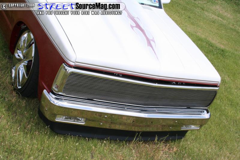 broke the new two tone up with a simple silver stripe. From there the entire truck was given a heady dose of clear followed by an intense buffing. The wheels were already there and approved by Blaine so they were kept with the new addition of color matched brake dust shields.