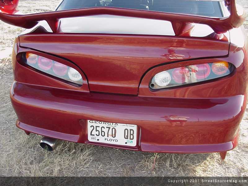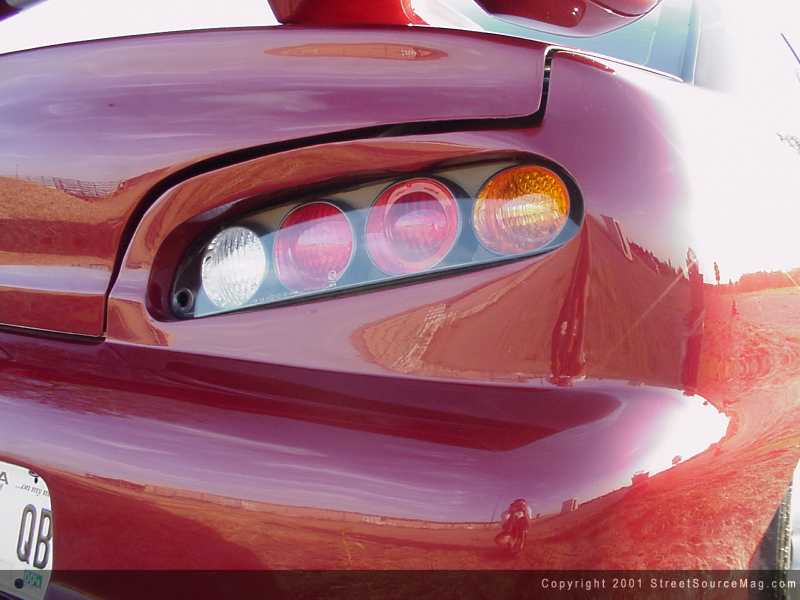 After everything was molded, Corey shaved the door handles, rain vents, moldings, emblems, trunk lock and the 3rd brake light. Now, you would think this would be enough, but if that is what you are thinking you better think again. The final step before paint was to shave the rear taillights and replace them with a set of Toyota Supra taillights. With the body complete, the last step was to apply the Candywine paint.