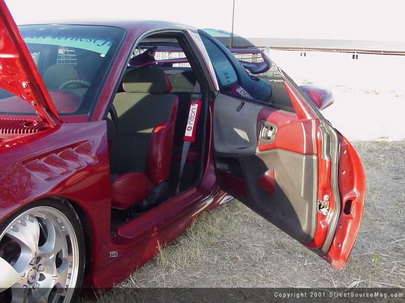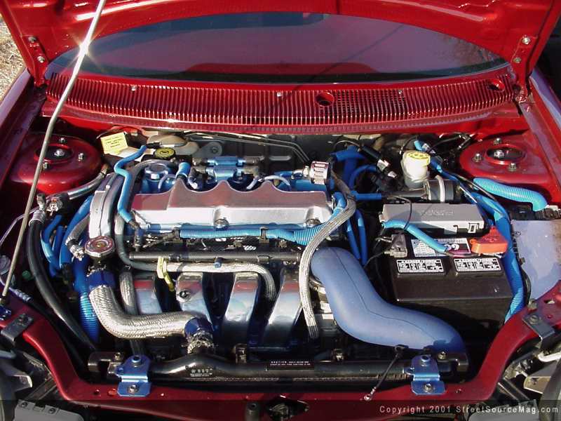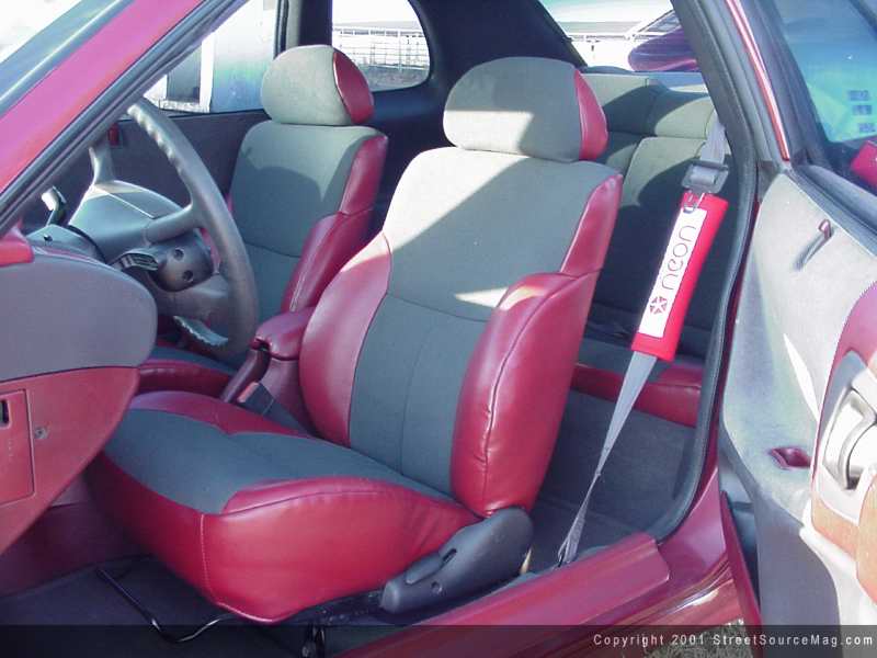 After the exterior of Michelle’s Neon was complete, it was time to move to the interior before moving on to the engine. To accomplish this, Michelle had the dash wrapped in leather by Crowes Upholstery of Rome, Georgia. Next, she installed white face gauges along with a carbon fiber pedal kit. Everything else including the seats was covered in burgundy leather material.  To roll the all show Neon to the events, a set of Autostrada 17 inch rims wrapped in 205-40-17’s BFG Scorchers were mounted up.