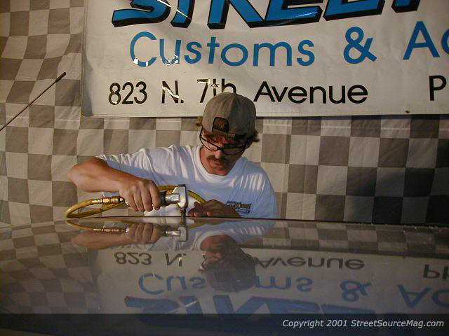 Step 10: Although you can also use a sawzall for this, Dave is using an air nibbler to keep the sheetmetal from distorting. Step 11: Using clamps to hold the roof up, as well as a spotter, Dave finishes cutting the roof.