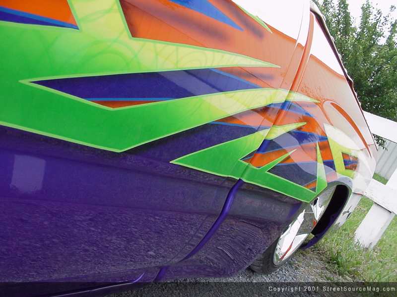 Spicing up the looks just a tad, Dustin then added some House of Color Violet Pearl and lime time green in graphic form.   Bringing together some finishing touches, Jenny Carr used green Lime Time paint for the pin striping needs.