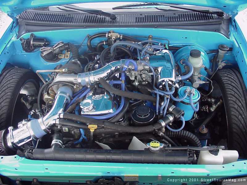 For starters, Mike would drop off the Taco to the crew from EL Prototypes for some major performance quirks. While in their hands, a Magnaflow stainless 3-inch Manifold would be installed along with an 11psi T-3 Turbo. By means of the new engine upgrade, the influence of more fuel would be important, making sure to pass this along would be the use of a Holley fuel pump. The next step would be to install a LC Engineering Billet flywheel, which had been lightened to 11 lbs, along with an LC Engineering clutch disc and pressure plate. Helping to cool things off, an electric Flexalite cooling fan would then be installed. Maintaining the engines breathing would be important with the added power. To bring the air in, a custom intake system along with a K&N filter would be mounted. Providing the engines exhaust would be a 3-inch stainless system with the cat removed for added power. The exhaust system was raised above the frame rails to ensure there was enough allowed clearance at low stances. With an engine built like Mikes, ensuring a good spark is one of importance. Nology 10mm plug wires where installed along with a 120 amp custom alternator. Giving a little more kick, the ignition was advanced a few degrees. While handing the engine bay some glamour, the valve cover was chromed along with a few other random items.
