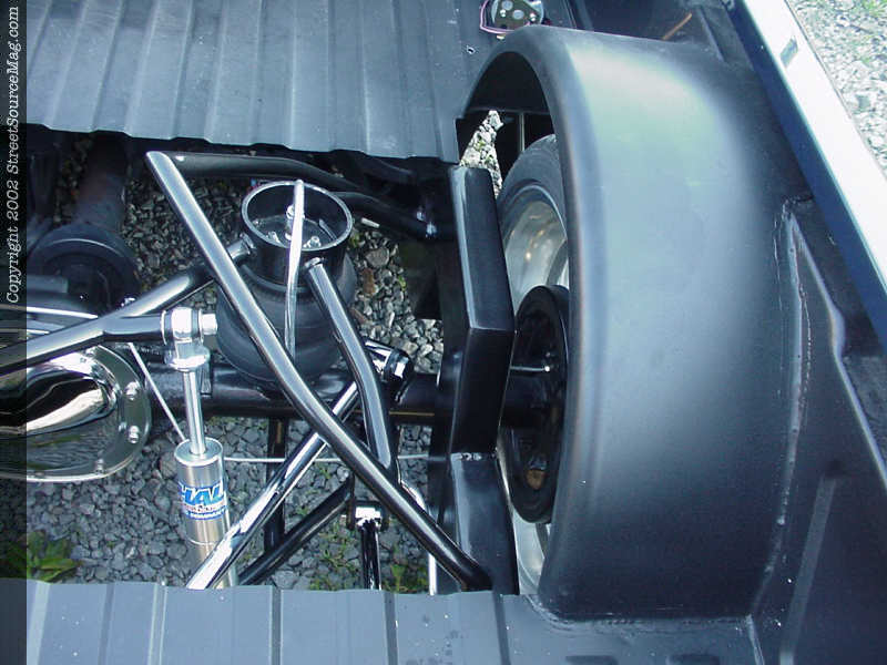 Starting with the rear end, the frame rails would be tubbed, boxed, notched and painted. Next a Pete and Jakes reverse triangulated 4-link would be installed to help the airbag set up bring the S-10 to the ground. Ensuring a good ride, Hal Billet QA1 shocks would be installed.