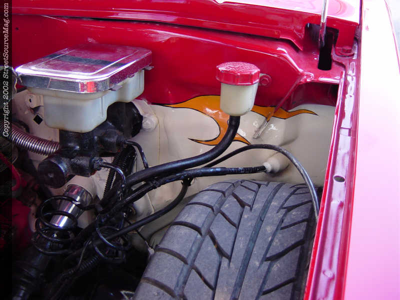Under the hood, you will find a host of chromed and painted goodies that earns Les extra points on any judging sheet. Les painted the factory 2.8L V-6 block and took the time to chrome the alternator, intake manifold, pullies, air cleaner and valve covers.
