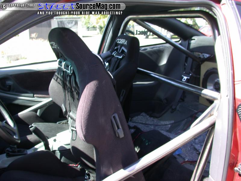 After you have checked everything and it is all placed and tacked where you want it, weld up all of the intersections. Be sure to weld all the way around the bars as it will not pass tech inspection at the track if you don't. It is also recommended that you do NOT grind the welds at all. This shows the tech inspector the quality of the welds and in many cases make for a stronger weld.Here you can see some photos of the completed cage. Soon we will be ripping the interior back out to paint the cage (That tech article will be in an upcoming issue of Import Street Source).  Still to this day, the roll cage is one of my favorite modifications we have done to the car so far. The car handles much better and feels far more safe (not to mention looks a lot better). The cage was originally intended to go into the car AFTER the turbo is installed but we have been waiting over 7 months for the turbo kit to arrive from ITSTurbo.net. When they get it to us we will show you how it is installed as well! You can keep an eye on Project Z at http://www.streetsourcemag.com/projectz/
